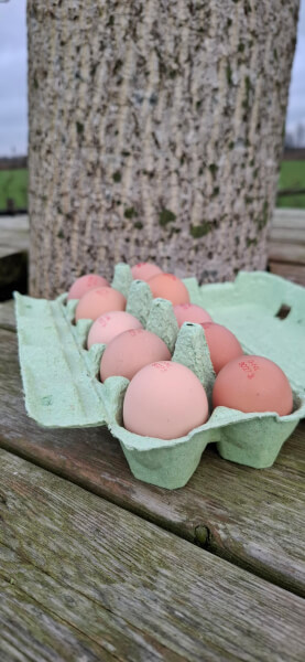 De eieren zijn biologisch gecertificeerd. Kijk bij Leveranciers Huize Wilp hoe deze kippen leven.