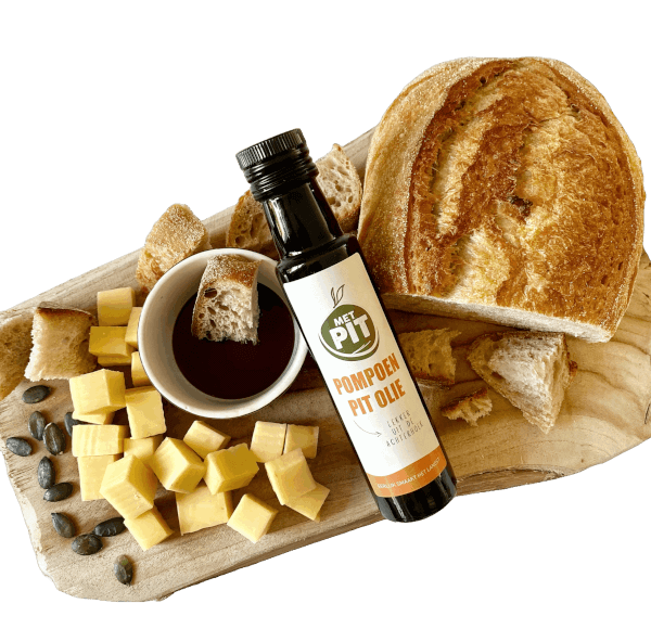 Weetje: een pompoenpit bevat 47% olie. Da’s best veel. Wij laten onze biologische pitten dan ook persen tot een pompoenpit olie. In Oostenrijk een ware delicatesse maar voor Nederland nog vrij onbekend. Door middel van .. persing, komt er uit de pitten een hele mooie, diep donkere olie met een nootachtige smaak. De olie is alleen geschikt voor koud gebruik en is onder andere heerlijk over salades, door de soep, als brood-/kaasdip, over gegrilde groentes maar ook pastagerechten of stukken vlees. Onze favoriet? Over slagroomijs met wat fijngehakte geroosterde pitten. Je weet niet wat je proeft!